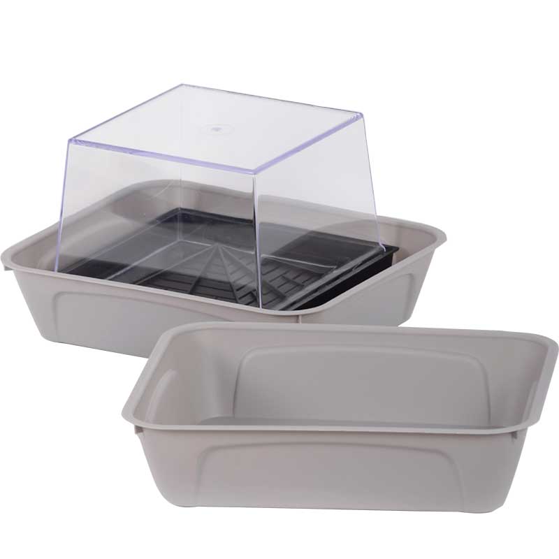Ett tätt och diskret grått bottentråg till Nelson Gardens groddbox, Primo Vitamino, skyddar underlaget från att bli blött. Tillverkat av polypropen (PP) och kan diskas i maskin vid maximalt 40°C.