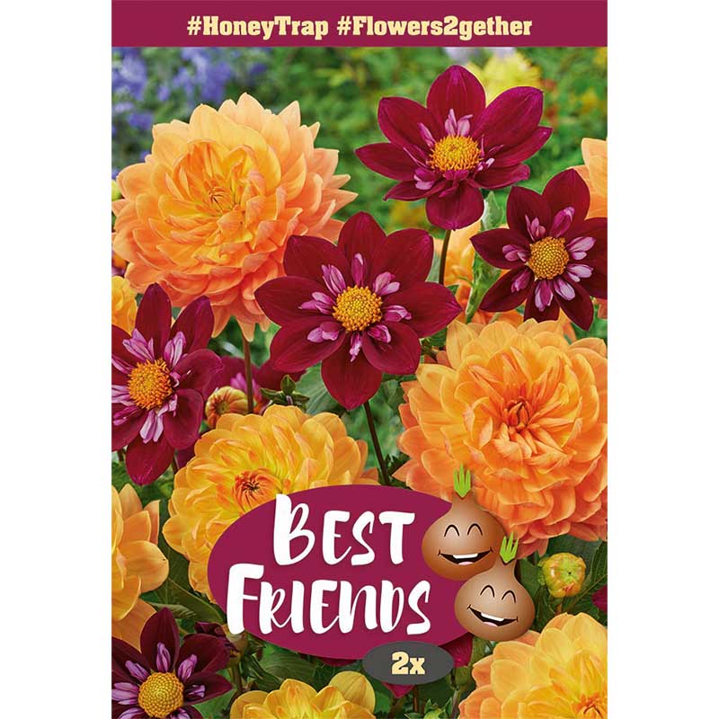 Denna dahlia-mix av ‘Go Go Orange’ och ‘Impression Fantastico’ erbjuder en vacker kontrast i varma nyanser. Den harmoniska kombinationen gör sig väl både i rabatten och som snittblommor. Dahlior är enkla att sköta och kan leva länge om knölarna sköts om på hösten. Blomningstid: juli-oktober. Läge: sol, halvskugga. Planteringstid: mars-juni. Vetenskapligt namn: Dahlia x pinnata halskrås-gruppen, Dahlia x pinnata. Antal per förpackning: 2. Storlek lök/knöl: I.