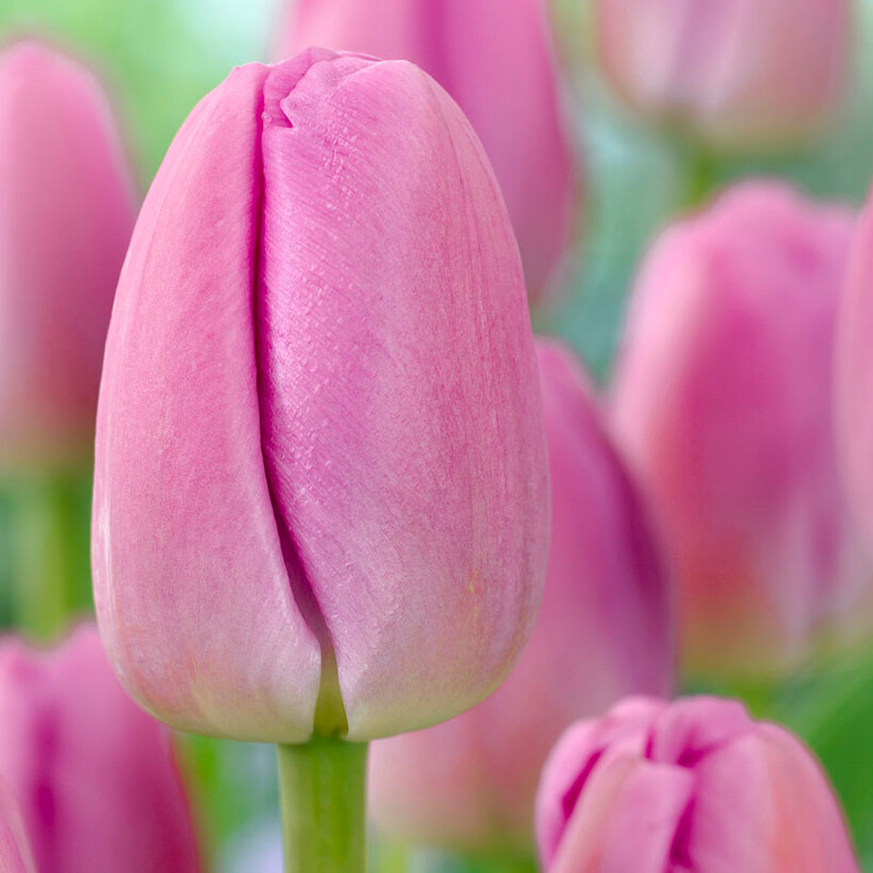 Den ståtlig rosa Darwintulpan ’Pink Pride’ har vackra, stora, äggformade blommor på stadiga stjälkar. Dessa tulpaner är kända för sin förmåga att återkomma år efter år i rabatten och sprida sig genom sidolökar.