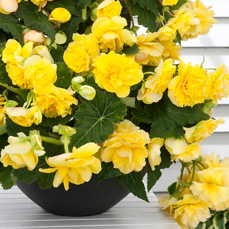 Nyhet! Upptäck de doftande blommorna hos den nya sortgruppen av knölbegonior, ‘Odorosa’. Dessa blommor, som påminner om rosor, pryder växten tillsammans med ett frodigt, mörkgrönt bladverk med bronsfärgade inslag. ‘Odorosa’ fungerar utmärkt både i kruka och i ampel, och blommar rikligt och ihållande under flera månader. Knölen kan bevaras och återanvändas år efter år.