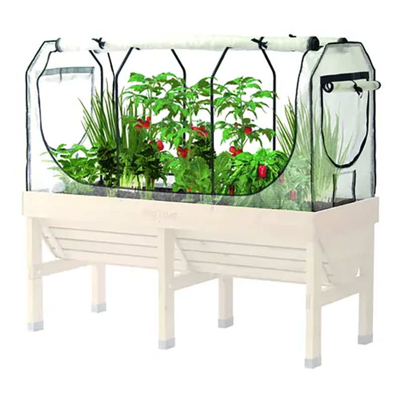 Överdraget, tillverkat av slitstarkt PE-plast, skapar en varm och skyddad miljö för grödor och växter. Det har öppningsbara luckor som möjliggör optimal ventilation och är utrustat med ett integrerat nät för att skydda växterna mot ohyra. Ramen är gjord av pulverlackerat stål. Överdraget är anpassat för VegTrug Classic Medium och har måtten 1,8 m x 90 cm.