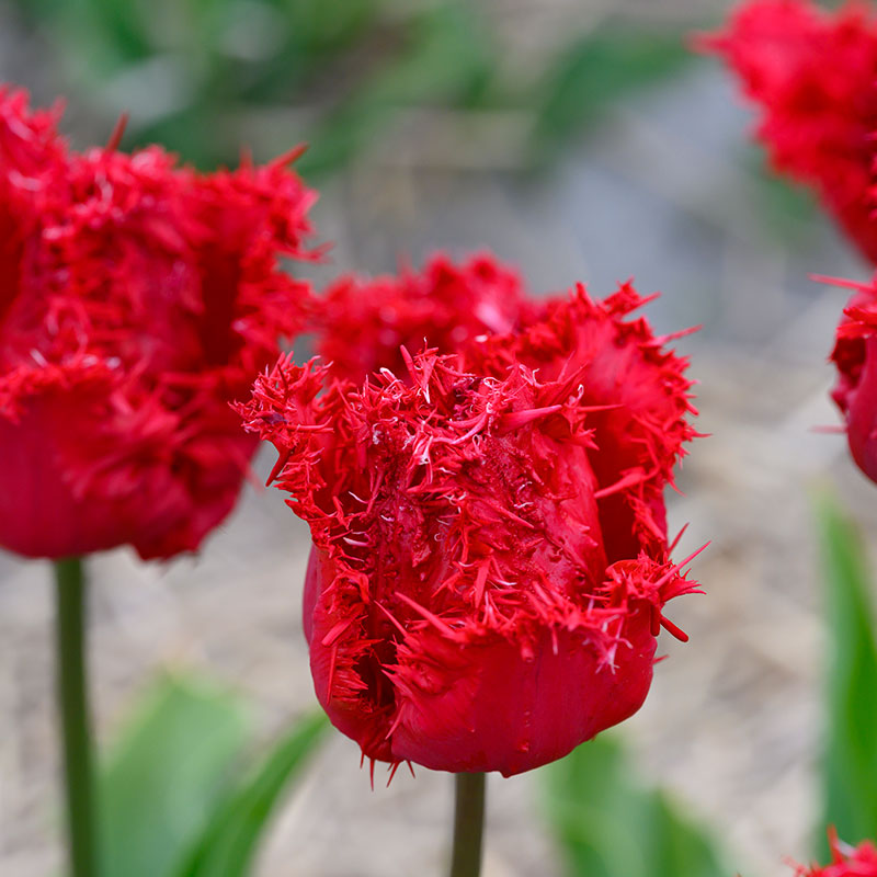 Enkelblommande fransade ‘Barbados’ är en chic tulpan med eleganta, röda fransar. Dessutom erbjuder fransade tulpaner en lång hållbarhet, vilket gör dem idealiska för trädgården.