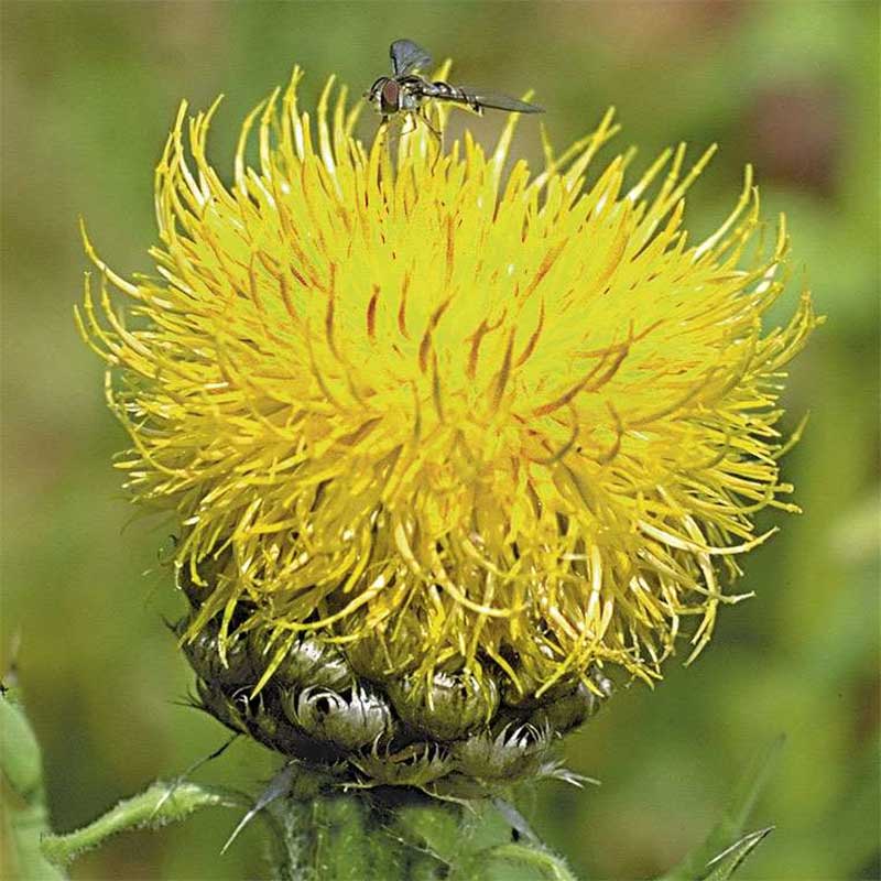 Guldgula, tistelliknande blommor med dekorativ design, utmärkta både som snittblommor i buketter och i trädgården där de når en höjd av cirka 100 cm. De har en robust och distinkt utstrålning som fångar ögat.