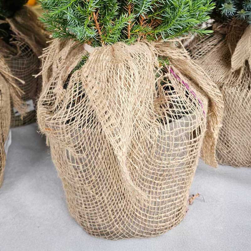 Juteväven är gles och tillverkad av jutefiber, vilket ger den en rustik och naturlig look. Den är 80 cm bred och kan köpas per hel löpmeter. Vävens mångsidighet gör den lämplig för flera användningsområden i trädgården och som dekorationsmaterial.