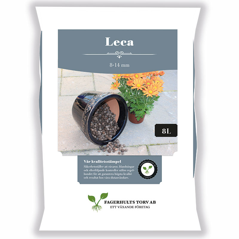 Lecakulor har ett flertal användningsområden och är mångsidiga i sitt bruk. De används ofta till att fylla ut stora krukor och urnor för att underlätta förflyttning. De kan även blandas i jord för att förbättra struktur och syresättning, samt fungera som täckmaterial i inomhusplanteringar och offentliga miljöer. Lecakulor är perfekta för dränering i krukor och urnor; lägg minst 10 cm lecakulor på bottnen för att förbättra dräneringen för växtens rötter. De är också lämpliga för odling i hydrokultur (vattenodling). Storlek: 8-14 mm. PH-värde ca 7-8. Förpackningen innehåller: 8 liter. Vi har valt jordprodukter från Fagerhults Torv på grund av deras långa erfarenhet, bra miljötänk och leverans av produkter med hög kvalitet.
