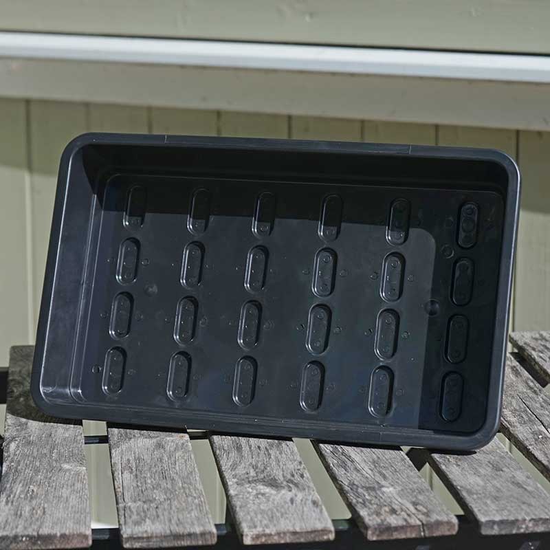 En växtbricka av hög kvalitet gjord för breddsådd eller för att användas som brätte för flera mindre krukor. Tillverkad av 100% återvunnen plast och helt återvinningsbar.