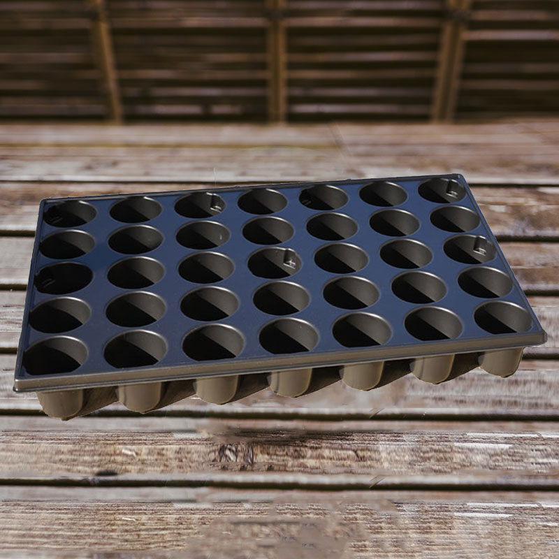 Brätte i proffskvalitet med 35 celler, tillverkad av 100% återvunnet material. Lämplig för frösådd, sticklingar och uppdragning av plantor för att maximera utrymmesanvändningen. Passar perfekt med underbevattningsbrickan artnr: 927, Odlingslåda XL artnr:14239, Standard Garden Tray artnr: 8141 och innanför Minidrivhus XL artnr: 9788. Yttermåtten är 33×51 cm och pluggarna mäter 57 mm i diameter upptill, 37 mm i botten och har ett djup på 60 mm.