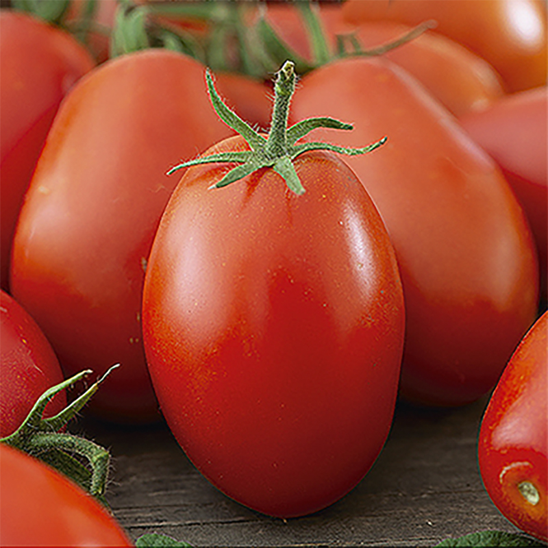 Ny hybrid med plommonformade frukter med fast fruktkött. Frukterna blir mörkt röda när de är mogna och väger runt 120-130 gram. Motståndskraftiga plantor med stora mörkgröna blad.